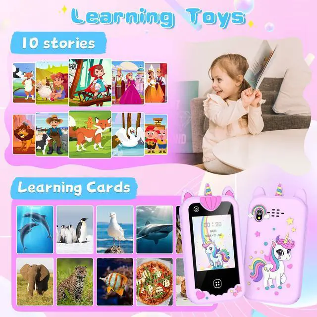 [Educational Kids Toy] - The phone for kids features 10 stories, country landmarks, animals, jobs and food learning. Besides, 13 puzzle games to help exercise kids logical thinking, reaction ability. With the drawing feature, kids can develop their imagination and create their own works, not limited to paper drawing. And the habit tracking function can help children establish a good sense of time and lifestyle habits. Its an excellent choice to help them develop skills while enjoying themselves.
