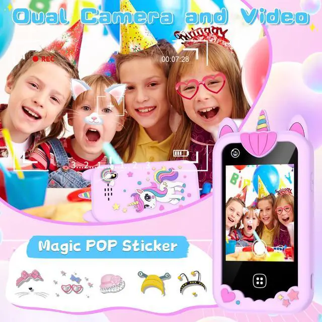 Kids Smart Phone Toys for Girls - 2.8 Touchscreen Cell Phone for Kids Age 3 4 5 6 7 8 9 Year Old with Dual Camera, Music Player, Games, Clock, Learning Toys for kids Christmas Birthday GiftsPurple
