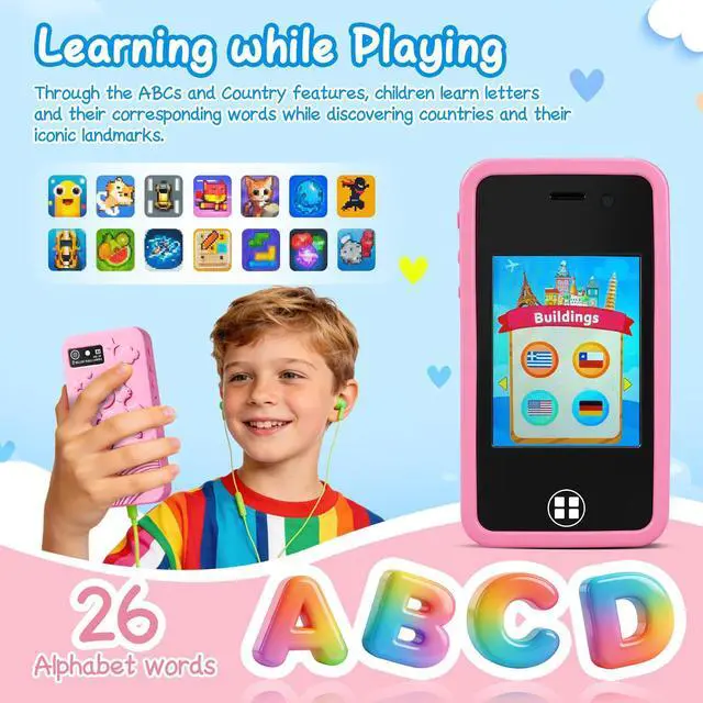 Is your child asking for a phone, but they are too young for the internet? Meet the perfect compromise. The E-MODS GAMING Kids Smart Phone provides the realistic experience kids crave with the safety and educational value parents demand. Why Parents Choose This Over Competitors: 1. The "Focus-First" Approach We intentionally avoided loading this phone with hundreds of mindless, addictive games. Instead, our 14 select puzzle and logic games are designed to engage your child's brain without overstimulating them. It is ideal for children who need focused play. 2. A Tool for Growing Up Transform playtime into routine time. The Photographer: Dual cameras with fun sticker filters let them capture memories. The Musician: An MP3 player (with included 16GB storage) lets them listen to their favorite songs or bedtime stories through the included headphones. The Time-Keeper: Teach time management with the Stopwatch, Timer, and Alarm features. The Explorer: A built-in Flashlight helps them feel brave in the dark. 3. Built for the Rough & Tumble Kids drop things. Thats why our phone features a reinforced, food-grade silicone case that absorbs shocks. The size is specifically calibrated for smaller hands, reducing the likelihood of drops compared to larger, bulkier "phablet" style toys. 4. The Ultimate Travel Companion Heading on a road trip or a flight? The long-lasting battery and headphone jack make this the perfect quiet-time toy for car seats and waiting rooms. No Wi-Fi is needed for any of the functions! What's in the Box? (Everything you need!) 1 x Kids Smart Phone Toy 1 x 16GB Micro SD Card (Pre-installed) 1 x Protective Silicone Case 1 x USB-C Charging Cable 1 x User Manual Give them their first "grown-up" device that is safe, educational, and ready to play right out of the box