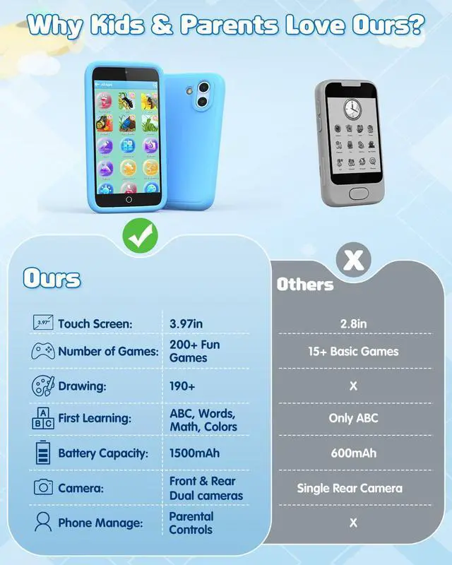 Our kids’ smart phones are designed to blend play with education, offering 200+ learning games, 190+ fun coloring and drawing, and engaging story adventures that make every day a new discovery.