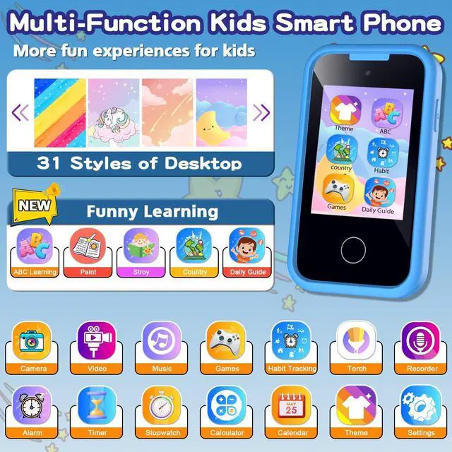 Multi-function Touchscreen Kids Smart Phone for 3-12 Year Old Boys Girls