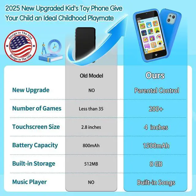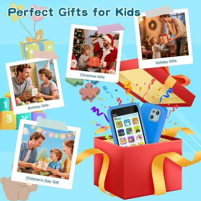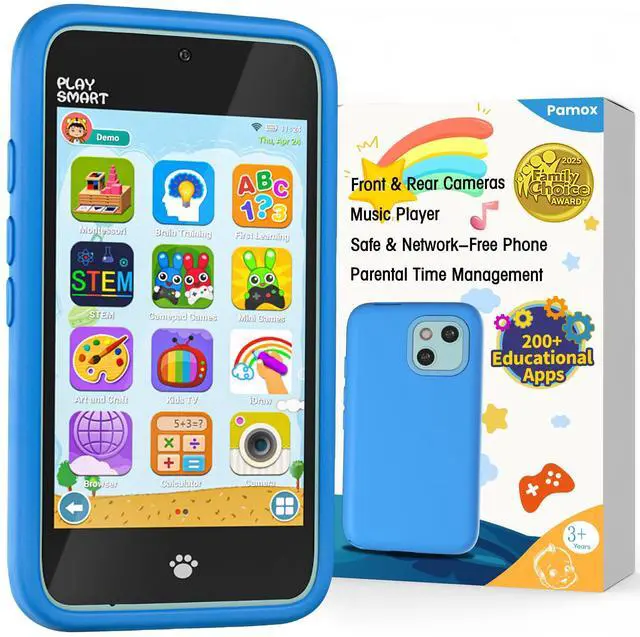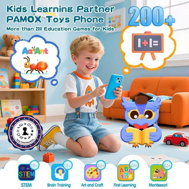 PAMOX Kids Toy Phones with Dual Camera and 200+ Educational Puzzle Games