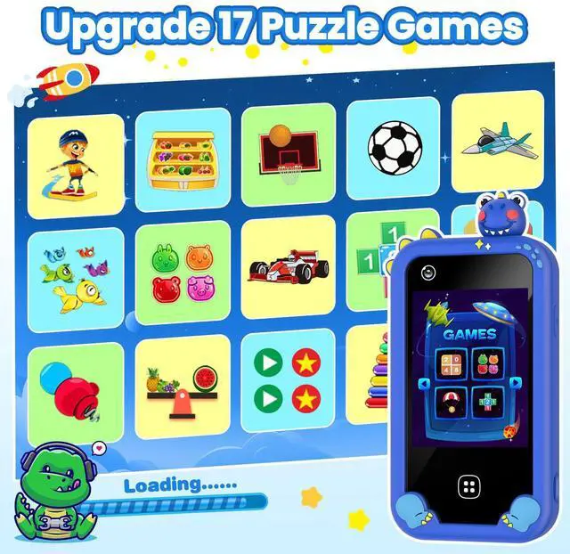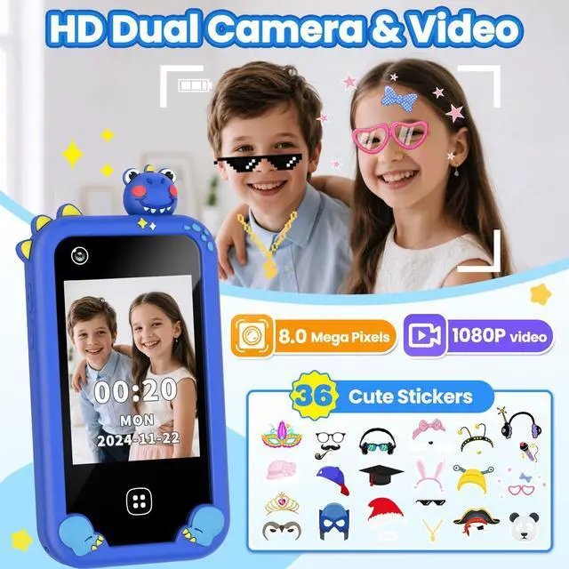 2.8 touchscreen, 30+ wallpapers, and a 1200mAh battery for hours of play. Includes silicone case, screen protector, and anti-loss lanyard. No WiFi neededsafe and screen-smart!