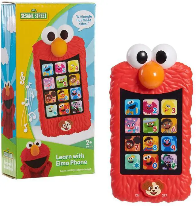 Learn with your favorite friends from Sesame Street! The Sesame Street Learn with Elmo Phone toy lets kids interact with Elmo to learn letters, numbers, colors, shapes, music, and more from 12 Sesame Street characters. This fun, Elmo-themed toy phone features 12 colorful buttons and over 50 learning phrases, songs, and sounds to keep preschoolers engaged and entertained for hours. Slide the Tango switch to turn on the phone, and then press any button to learn with Elmo. Hear jokes with the Ernie button, practice Spanish with Rosita, and learn about recycling with Oscar. Press the Elmo button to sing along to “Wheels on the Bus.” The Sesame Street Learn with Elmo Phone is a portable 6-inch size for kids to bring along to school, on road trips, and play dates. Great for show-and-tell and sharing with friends. Requires 3 x AG13 button-cell batteries (included). For kids ages 2 years and up. Sesame Street and associated characters, trademarks, and design elements are owned and licensed by Sesame Workshop.