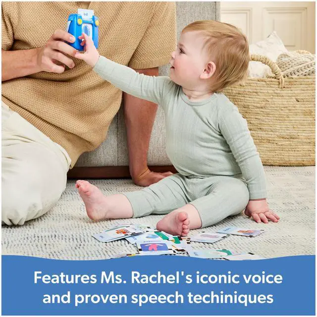 - To play with your Ms Rachel First Words Talking Flash Cards, first turn on the card reader by using the power switch on the back to quiet mode or loud mode. Insert a card into card reader to activate pronunciation. Press the top left yellow button to repeat the word.