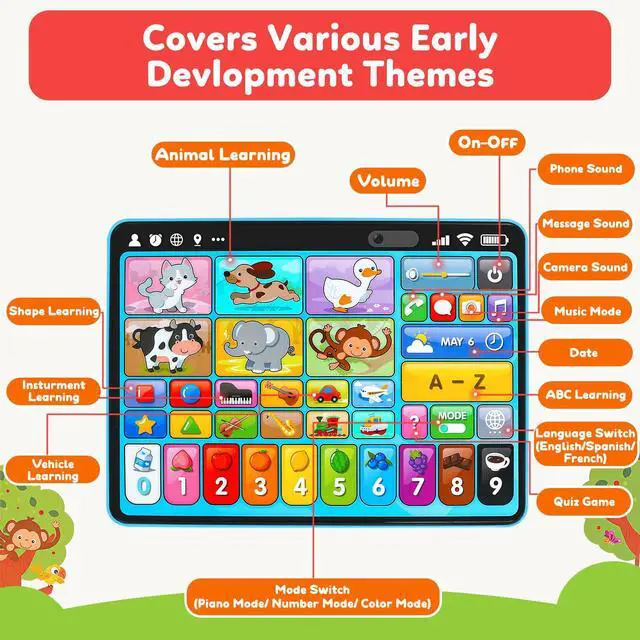 Great learning toys for toddlers 1-3, the learning tablet features multiple interactive modes that are both entertaining and educational, giving kids plenty of room to explore.