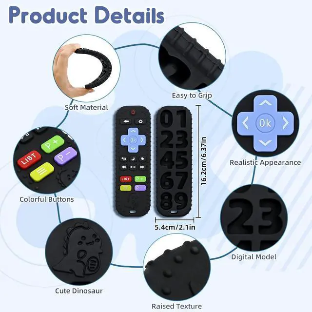 Our remote control teething gel toys are made of high-quality 100% food-grade silicone materials, PVC Free, Lead Free, BPA Free, Latex Free, No odor, approved ASTM and CPSIA test, it follows the US standard of toys safety, so it is great teething toys for babies. And this teether is a sturdy, which is made of thick silicone, there is cut out shapes on the back that could be filled with water and froze or anything really to make cold snacks, help babies chew on when they are teething to relieve their pain.