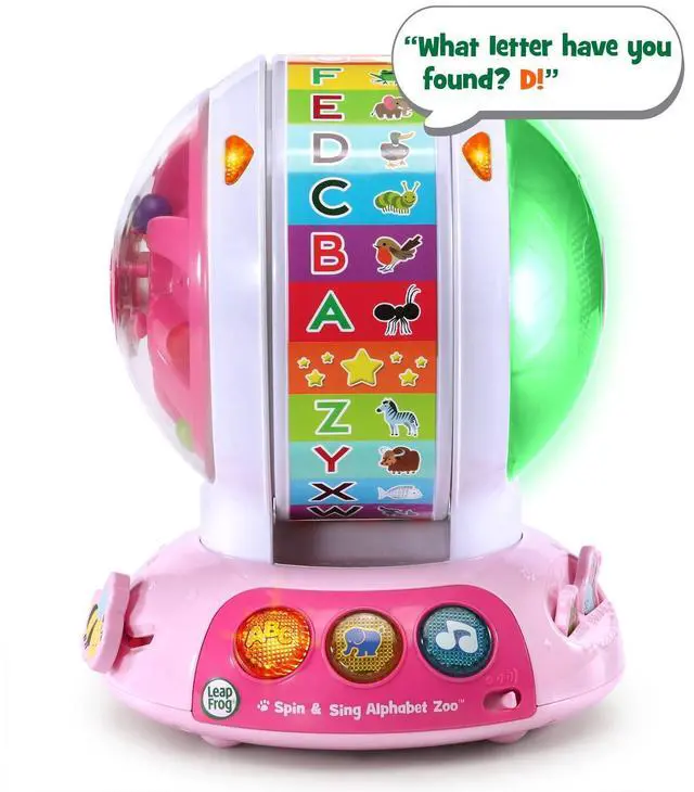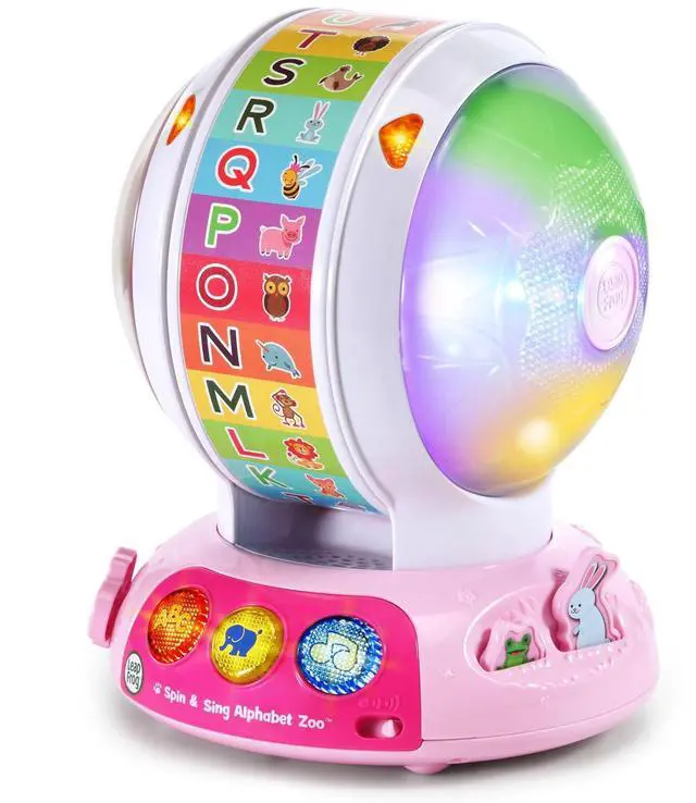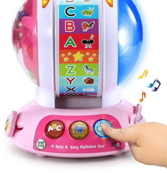 While the ball spins, listen to beads and watch animated light-up LED colors. Slide the bee or press the frog and rabbit buttons for surprise actions that develop motor skills.