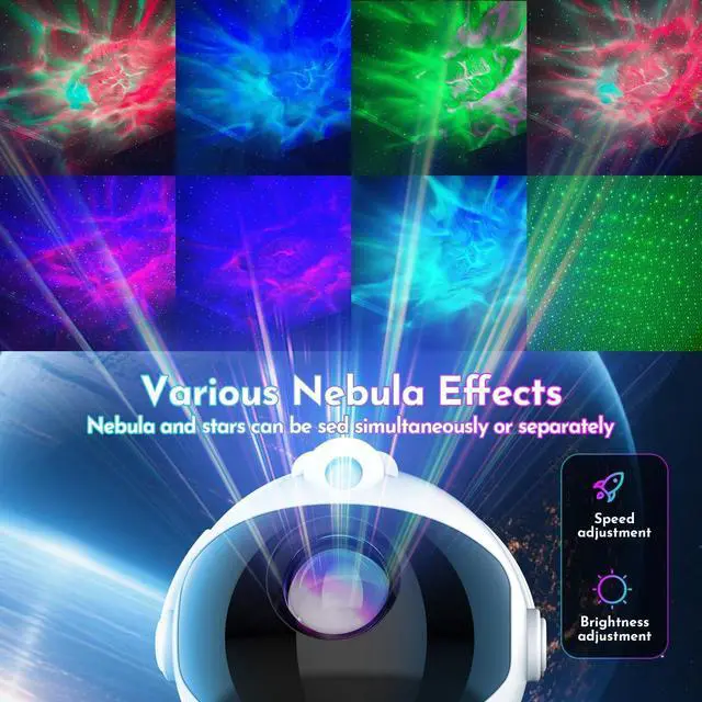 400+ Dynamic Nebula & Star Combos: Featuring 8 vibrant nebula colors, 5 adjustable brightness levels, and 5 projection speeds, this astronaut galaxy projector for bedroom creates over 400 stunning lighting effects. Watch as green breathing stars twinkle alongside swirling nebulae, effortlessly transforming any room into a dreamy, immersive star projector for bedroom relaxation.