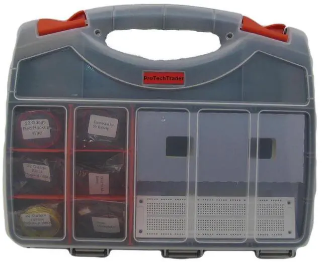 - Double Sided Storage Carrying Case with over 30 compartments to keep your electronics organized - Configurable to hold your completed circuits as well.