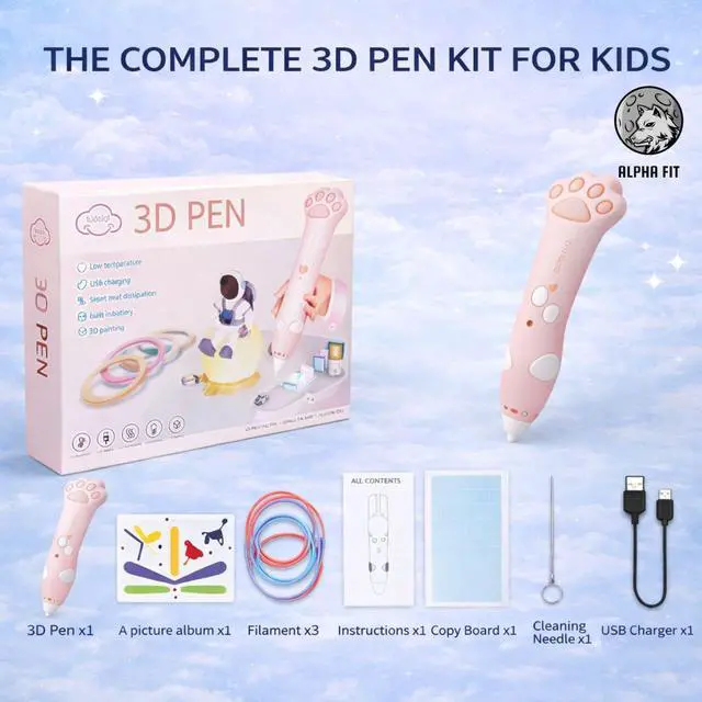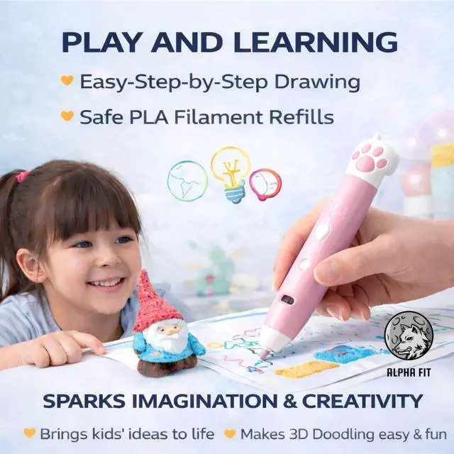COMPLETE STARTER KIT & MULTIPLE COLOR OPTIONS: Everything your little artist needs is included to start creating right away! Each kit comes with the wireless 3D pen, safe PCL filament coils in vibrant colors, a USB charging cable, and an inspiring stencil guide book. Available in 6 exciting colors: Classic Navy & Purple, playful Cat Paw Pink & Blue, and soft Pastel Light Blue & Pink choose their favorite shade to spark endless creativity!