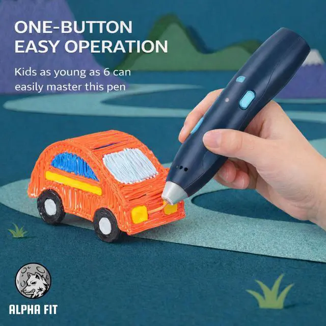 ONE-BUTTON EASY OPERATION FOR INSTANT FUN: Simplicity is key for young users! This 3D pen features an intuitive one-button design for effortless filament loading and pausing. Kids as young as 6 can quickly master its use without any complicated speed or temperature adjustments. Just turn it on, insert the filament, and they're ready to bring their imaginative 3D drawings to life in moments.