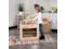 Pretend play is an essential part of a child's growth that helps to support social and emotional development. This wooden kitchen stove will encourage imagination and creativity and will teach sharing when playing with others. This wooden pretend play stove has a simulated grill for pretend hamburgers and hot dogs, 2 burners for pots of make-believe mac and cheese and an oven with a window to monitor their fantasy desserts. The oven has an interior shelf to store pretend food and pots and pans when not in use and 5 on/off rotating plastic knobs on the top of the stove make clicking sounds to make cooking more realistic for your child.