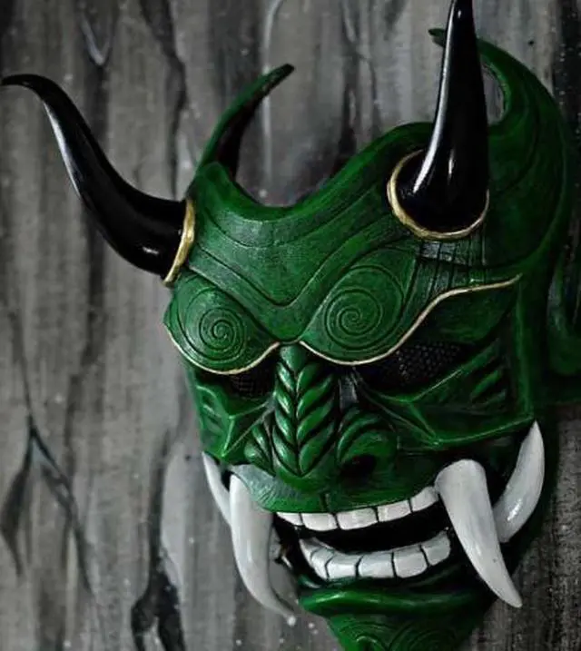 Halloween party red prajna mask prajna cosplay noh Japanese noh mask resin red face grimace fangs
