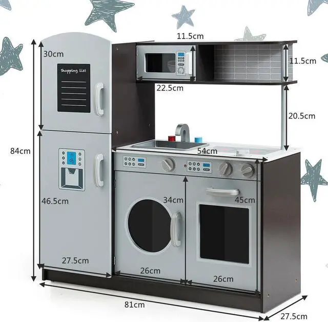 Easy to Assemble and Clean:This kid's kitchen comes with clear and brief instruction, which has straightforward illustrations and descriptions. Each screw and pin has its own code to let you easily understand the assembly progress. And the smooth surface is very easy to clean just with a damp cloth.