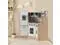 9-in-1 Kitchen Play-set: This kid's corner cooking toy is a miniature of a real kitchen in your home. It's composed of a range hood, stove, oven, microwave, ice maker, washing machine, sink and faucet, storage cabinet and a pretend telephone. These rich appliances bring kids to a wonderful game world while developing their cognitive ability, hands-on ability and social skills.