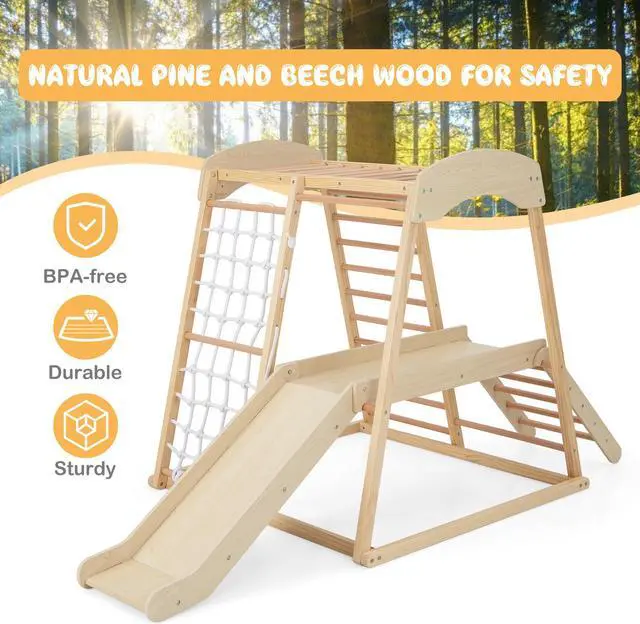 Ideal Gift for Boys and Girls: The wooden Montessori climber play set is a great gift for kids, allowing them to play with friends. They can cultivate motor skills, enhance physical fitness, promote social skills as well as improve coordination and more.