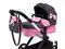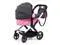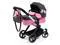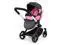 PRAM XEO: HEARTS - BLACK & PINK - The combi dolls pram XEO has a modern design and is suitable for dolls up to 20 inches (52 cm). With its adjustable handle, this doll's pram is easily adaptable to your child's height; also, it's possible to mount the carrycot in the direction of travel or towards your child. Its also possible to change the angle of the carrycot, thus the doll's pram is convertible to a jogger pushchair with a few simple steps. The carriers cover will either way; if she's sitting or lying in the pram; protect the little doll from the sun and wind. The pivoted front wheels assure a stable cornering. For transportation reasons the doll's pram can easily be folded. The accompanying bag has a long handle to be used as a shoulder bag and two short ones as a hand bag. Additionally, it includes a Handle height: 22.83-28 inches (58-71 cm). Product Measurements: 26.75 x 14.5 x 28.75 (68 x 37 x 73 cm).