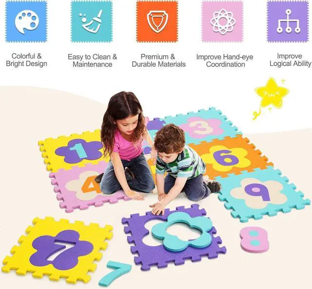 Improve Color and Number Recognition: We have carefully designed different and bright colors of playmats in order to improve kids' color cognition ability and stimulate creativity. In addition, babies can learn to recognize numbers and improve hand-eye coordination while enjoying comfortable using experience.