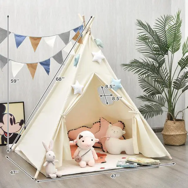 Fine Stability and Large Space: This teepee tent is supported by four planks of wood and each of the support has a footpad to ensure that its stability, and prevent the teepee from collapsing to ensure safety of kids. Besides, it can provide a large personal space for kids to read or play.