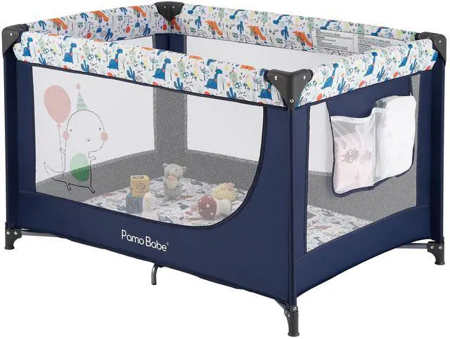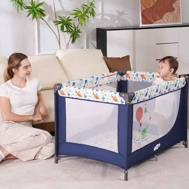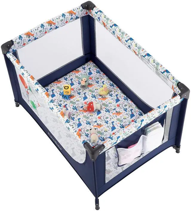 Compact Pack and Play - Portable Crib for Baby, Lightweight Foldable Travel Playard with Mattress Pad & Carry Bag, Safe Breathable Travel Bed for Home, Trips & Family Visits, Cute Pattern