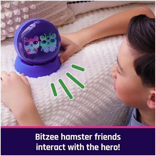 Introducing Bitzee Hamster Ball: digital friends you can interact with. Hamster Ball digital pets respond to touch and movements with cute sounds and reactions. Each Hamster Ball starts with a baby hero hamster. Feed your Bitzee, pet them, exercise on the hamster wheel and more. Watch your hero grow from baby to teen to Super Bitzee. Explore and roll to discover treats, items and 20 friends to collect with unique themes. Will you collect the Super Bitzee friends? Hamster friends even evolve at the same time as your hero and interact on the screen with them. Customize your hero Bitzee hamsters outfits, backdrop and pose; snap a picture and scroll through looks. Plus, play 5 mini games. Includes 3 AA batteries. Warning: produces flashes that may trigger epilepsy in sensitised individuals. Kids who enjoy animation, kids electronics, surprise toys, animal toys, fidget toys and STEM toys will love Bitzee toys for boys and girls. Even adults will be mesmerized with Bitzees screen-free innovative twist on 90s toys & games from their childhood. Bitzee interactive pet toys for kids are must-have birthday gifts or gifts for girls and boys for any occasion. Roll into adventure with Bitzee Hamster Ball.