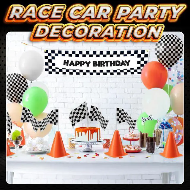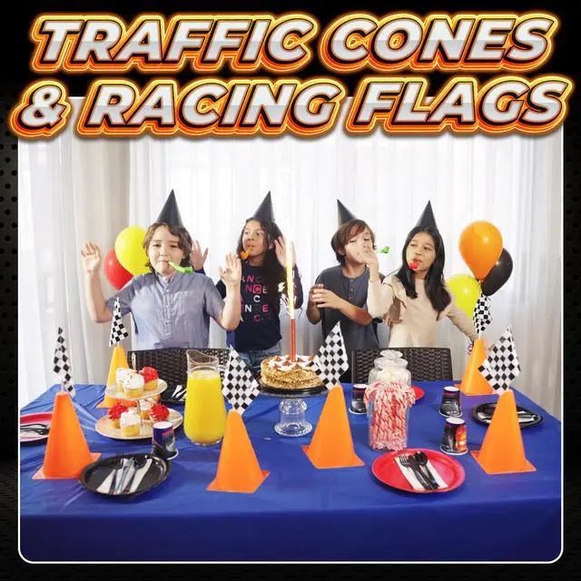 PERFECT RACING PARTY DECOR: Turn your party into a high-speed event with this ultimate race car decoration set! Use cones and flags to decorate tables, mark a race track, create a grand finish line, or set up party games that keep kids revved up and entertained. A must-have for racecar themed birthday celebrations for kids.
