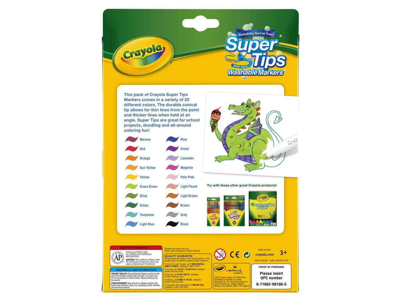 Crayola Marker,Wsh,Sptp,20/St,Ast 588106
