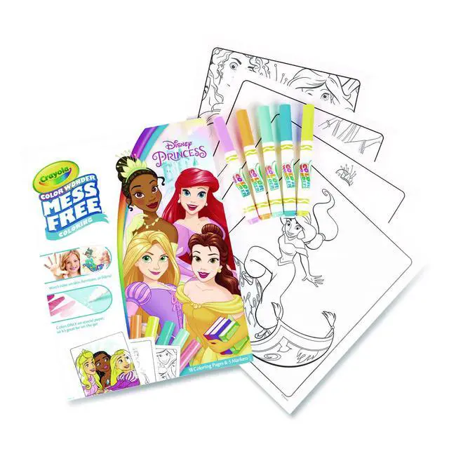 Crayola Color Wonder inks appear only on special Color Wonder Papernot on skin, clothing or carpets! This set contains 18 Disney Princess Coloring Pages and 5 Color Wonder Markers. Folder style packaging works as reusable storage for your coloring pages and markers. Works with all Color Wonder paints, markers, and stamps. Makes the perfect addition to any Disney Princess collection. Included art features Belle, Jasmine, Ariel and more. Great gift for girls ages 3 & up!