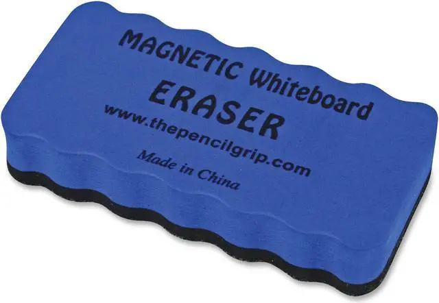 Magnetic whiteboard eraser adheres to any metal-backed whiteboard or steel surface for quick storage and access. Ergonomic edges provide a comfortable grip to easily erase large surfaces. Dark shading prevents the eraser from showing dirt or pen marks. Soft material effectively removes dry-eraser ink without harming the surface of your board.
