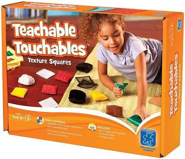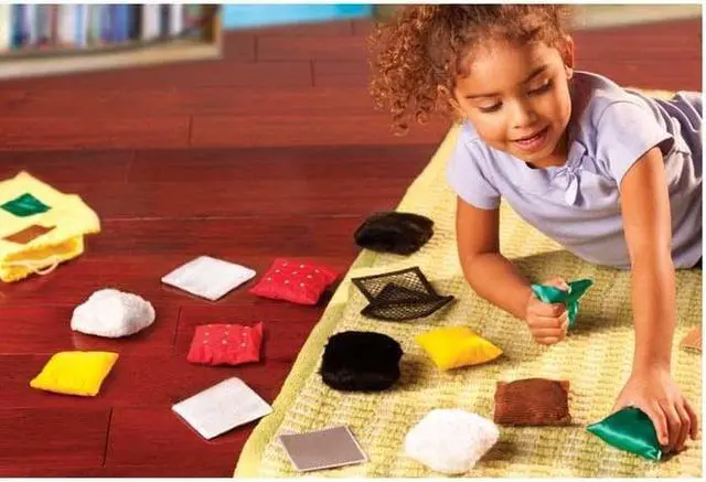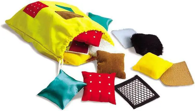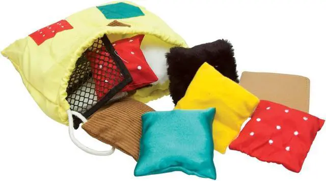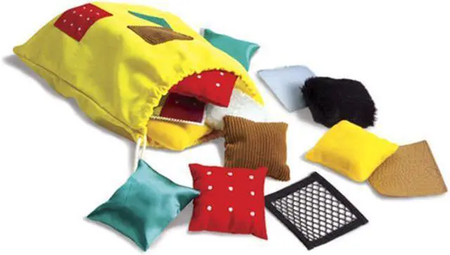 Texture squares scratchy, slippery, silky, or soft? Young learners build tactile awareness and vocabulary skills as they interact with these twenty Texture Squares. The textured squares allow for ten different pairs in a variety of hands-on activities. Each textured pillow or patch is approximately 2" to 3" in size, fitting perfectly in small hands and in the handy cloth drawstring bag. Includes a tip sheet packed with fun activities that touch on matching, vocabulary, communication, and tactile discrimination skills. Creativity Skill Set, Tactile Skill Set, and Visual Skill Set - This toy has also been evaluated by National Lekotek Center, a nonprofit organization dedicated to making the world accessible to children of all abilities.