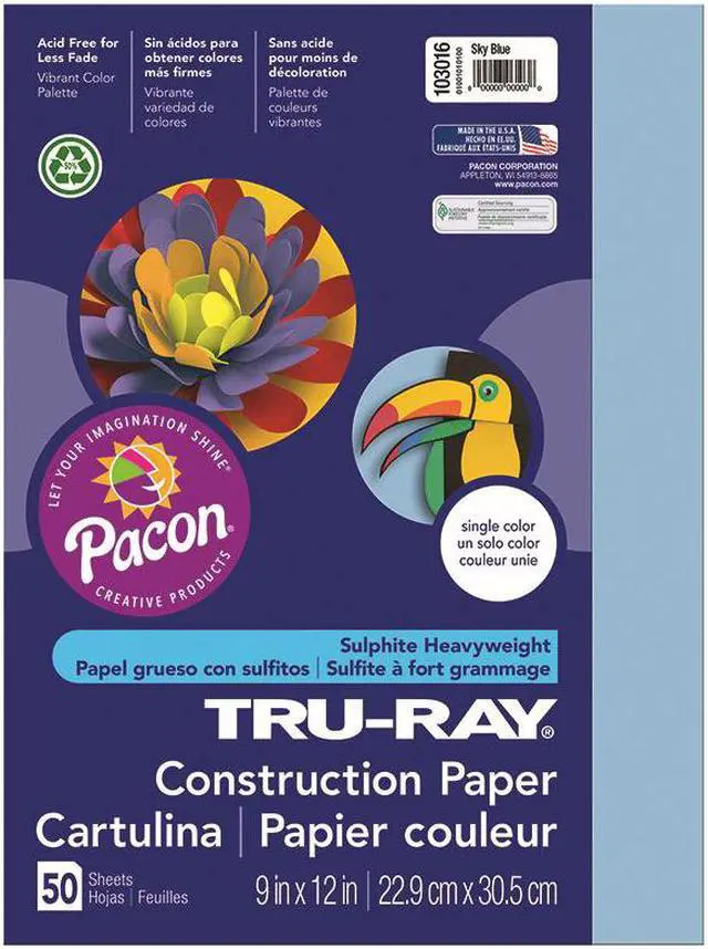 Tru-Ray Construction Paper, 76lb, 9 x 12, Sky Blue, 50/Pack 103016