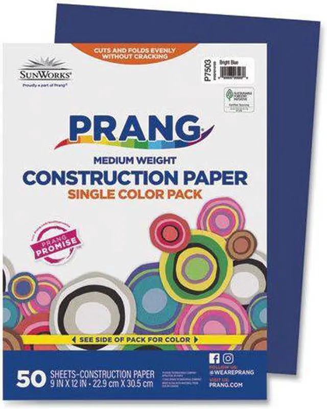 Sunworks Construction Paper, 58lb, 9 X 12, Bright Blue, 50/Pack 7503