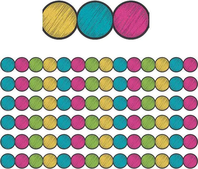 Use colorful border trim to liven up your classroom! Create fresh looks for bulletin boards, windows, walls, and class projects. Mix and match with coordinating products (stickers, notepads, awards, etc. ) for a classroom theme. Each pack includes 12 pieces (2 3/4'' x 35'') for a total length of 35 feet of trim! Sold as 6 packs for a total of 210 feet of border trim.