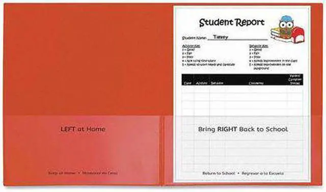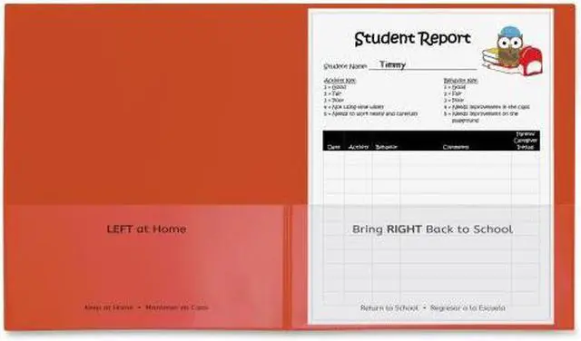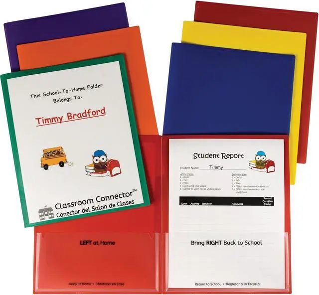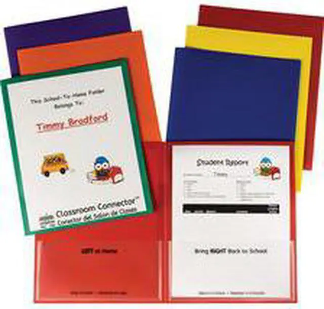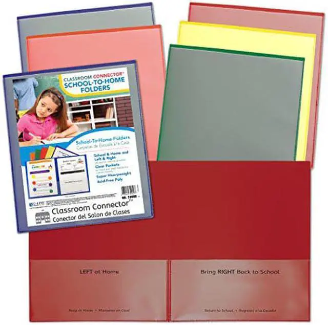 Make the connection between school and home stronger with these school-to-home, two-pocket folders. Keep parents and caregivers informed with daily updates on lessons, projects, behavior and more. The bilingual interior pockets are imprinted with "Home" and "School" designations in both English and Spanish. The left pocket specifically reads "LEFT at Home" to emphasize that contents of this pocket needs to stay at home. Right pocket reads "Bring RIGHT Back to School" for items that need to be reviewed and returned to school. Clear pockets on the front and back cover allow children to get creative and customize their own inserts. Folders are made of durable, acid-free, super-heavyweight polypropylene.