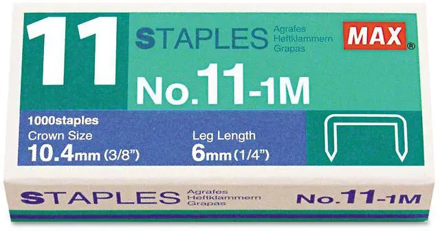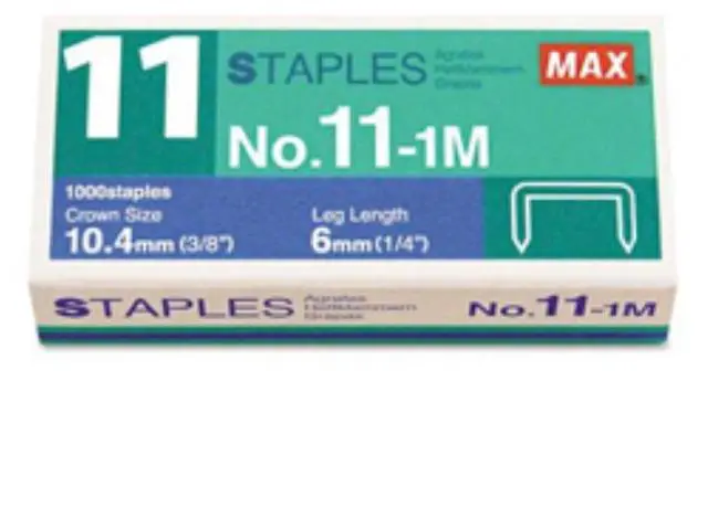 Max No. 11 Mini Staples, 0.25" Leg, 0.38" Crown, Steel, 1,000/Box NO111M
