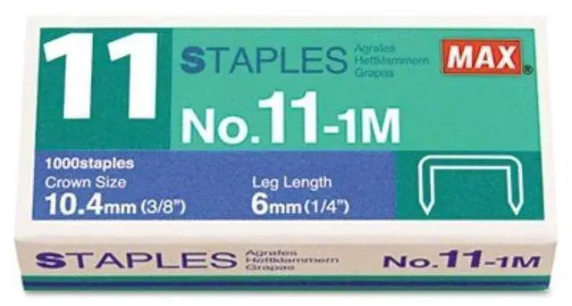 Max Usa Corp No. 11 Mini Staples for HD-11FLK, 1/4" Leg, 3/8"Crown Flat Clinch, 1, 000/Box