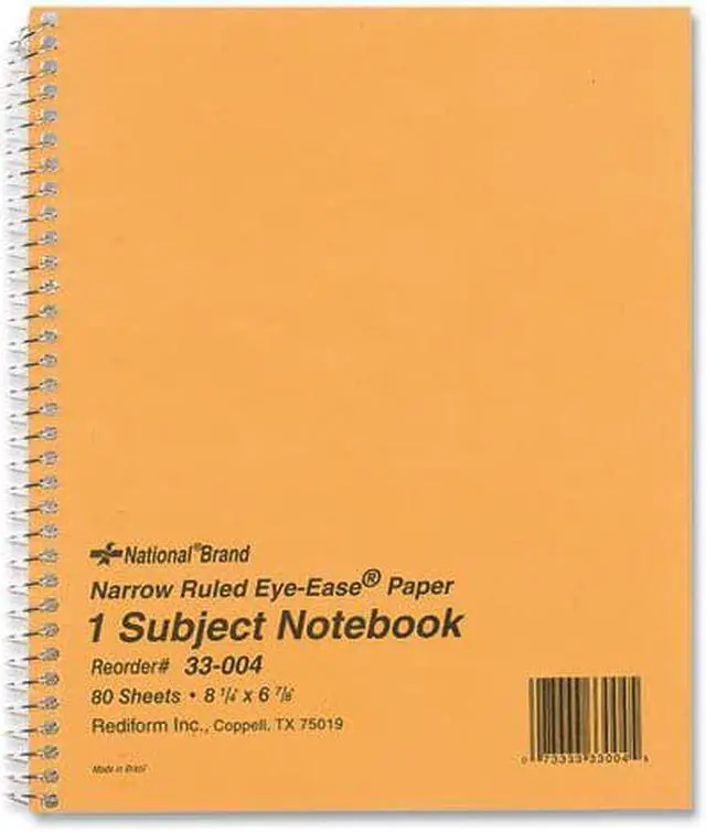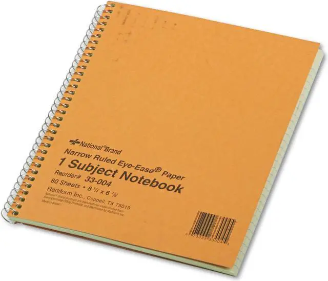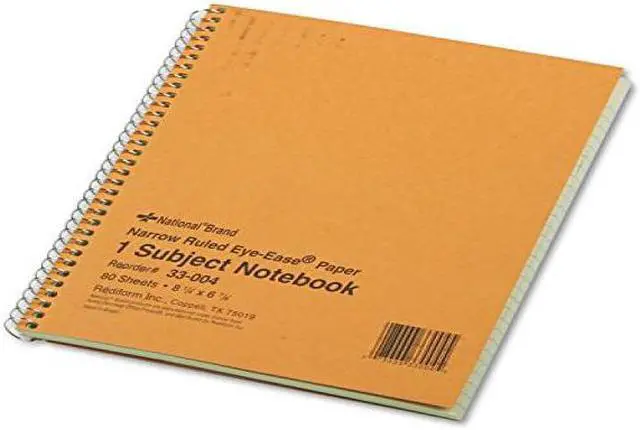 Keep track of ideas and other information with this narrow-ruled one-subject notebook. The pages are tinted green for easy viewing, while the wirebound side ensures that pages turn smoothly every time. This National Brand one-subject notebook has 80 narrow-ruled sheets that let you fit lots of writing on each page, while the compact size makes it easy to stash in a drawer or backpack.
