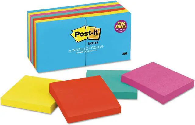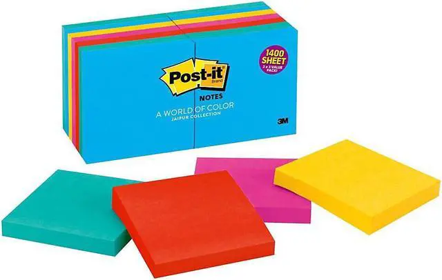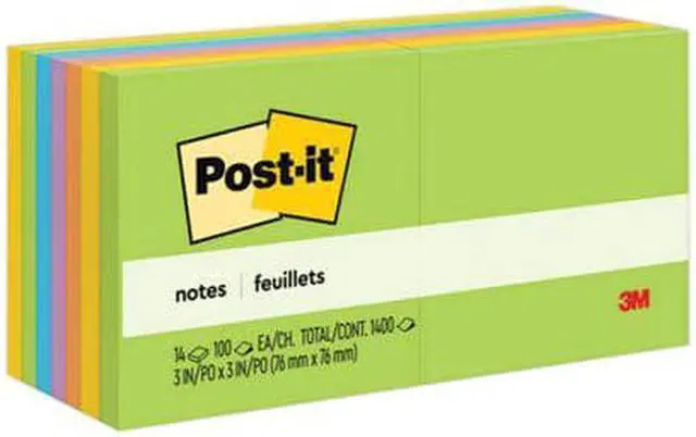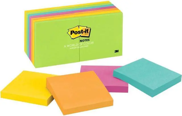 Post-it Notes are the perfect size for notes, numbers and lists. Repositionable adhesive won't mark paper and other surfaces. Attach notes without staples, paper clips or tape. Use the self-adhesive top strip to stick them on papers, desks and other places where you need a reminder. Notes are part of the Ultra Collection. Paper used comes from well-managed forests where trees are replanted. Each pad contains 100 sheets.