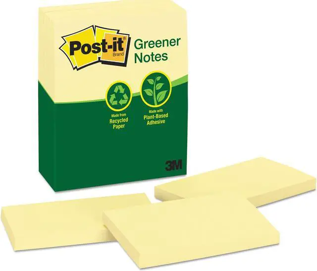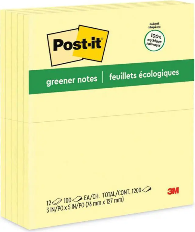 Recycled Note Pads, 3 X 5, Canary Yellow, 100-Sheet, 12/PackPost-it Greener Notes are recyclable.