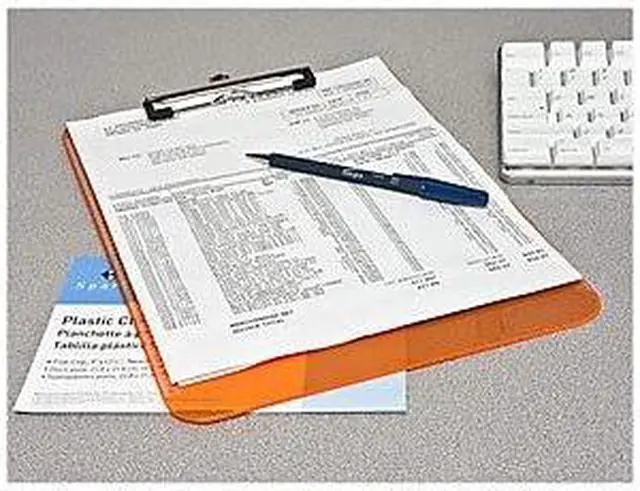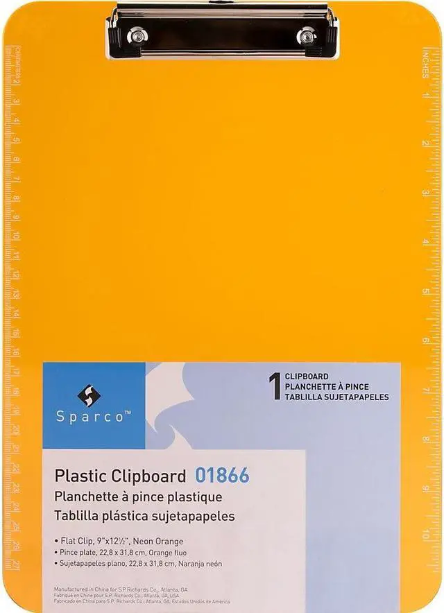 - The flat clip makes this durable, plastic clipboard space efficient and easy to use.
