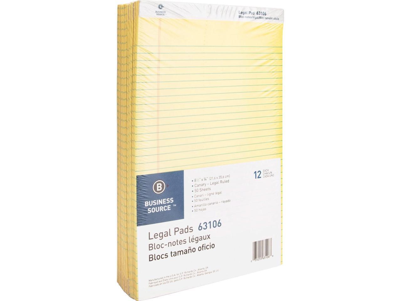 Business Source Legal Pads Legal Ruled 50 Sht 8-1/2"x14" 12Pack CA 63106