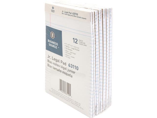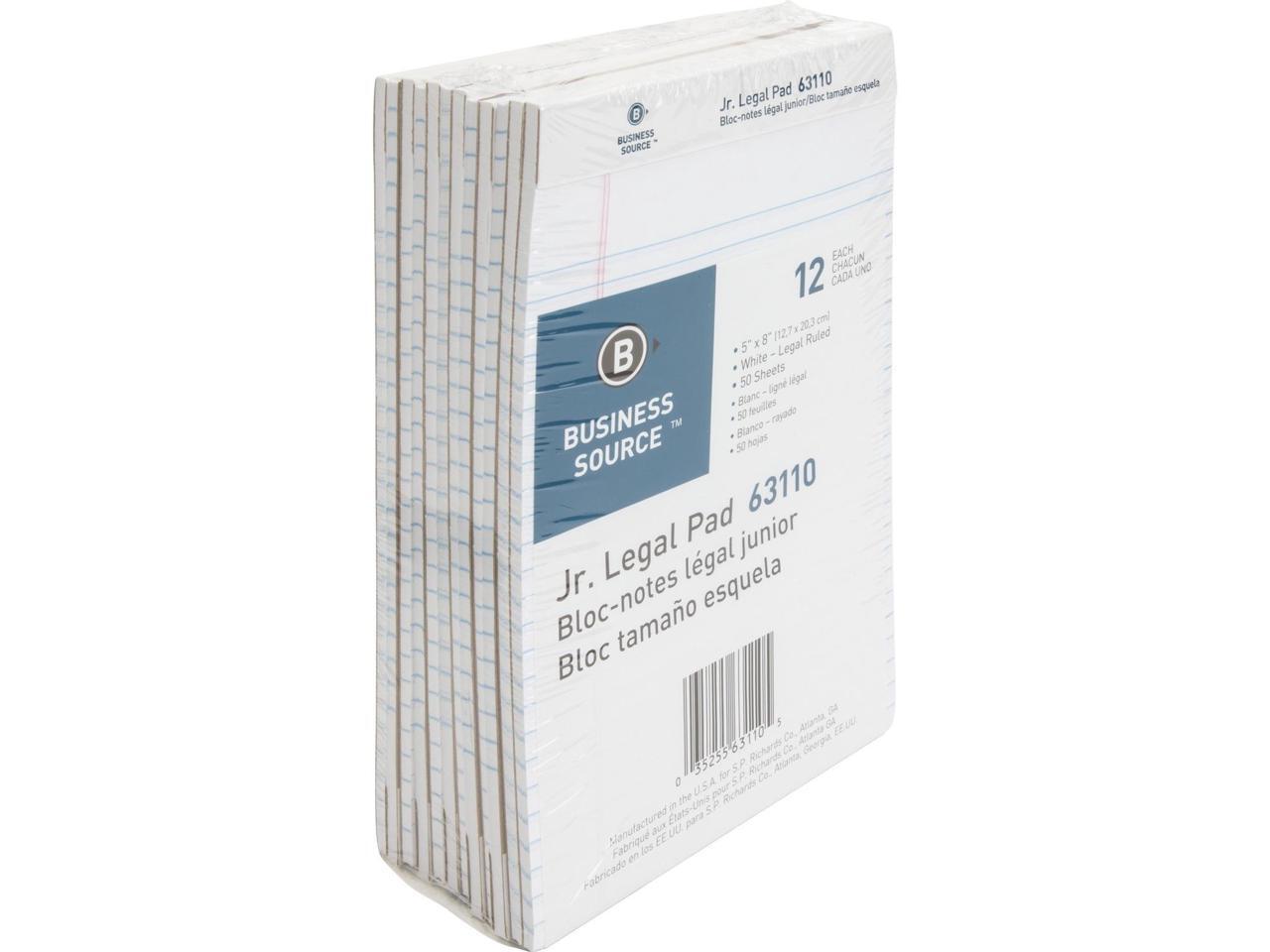 Business Source Legal Pads Jr. Legal Ruled 50 Sht 5"x8" 12Pack WE 63110