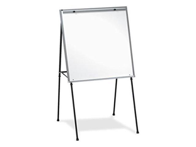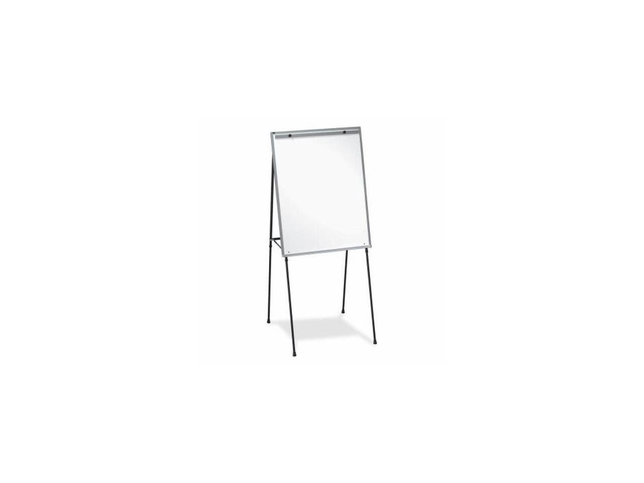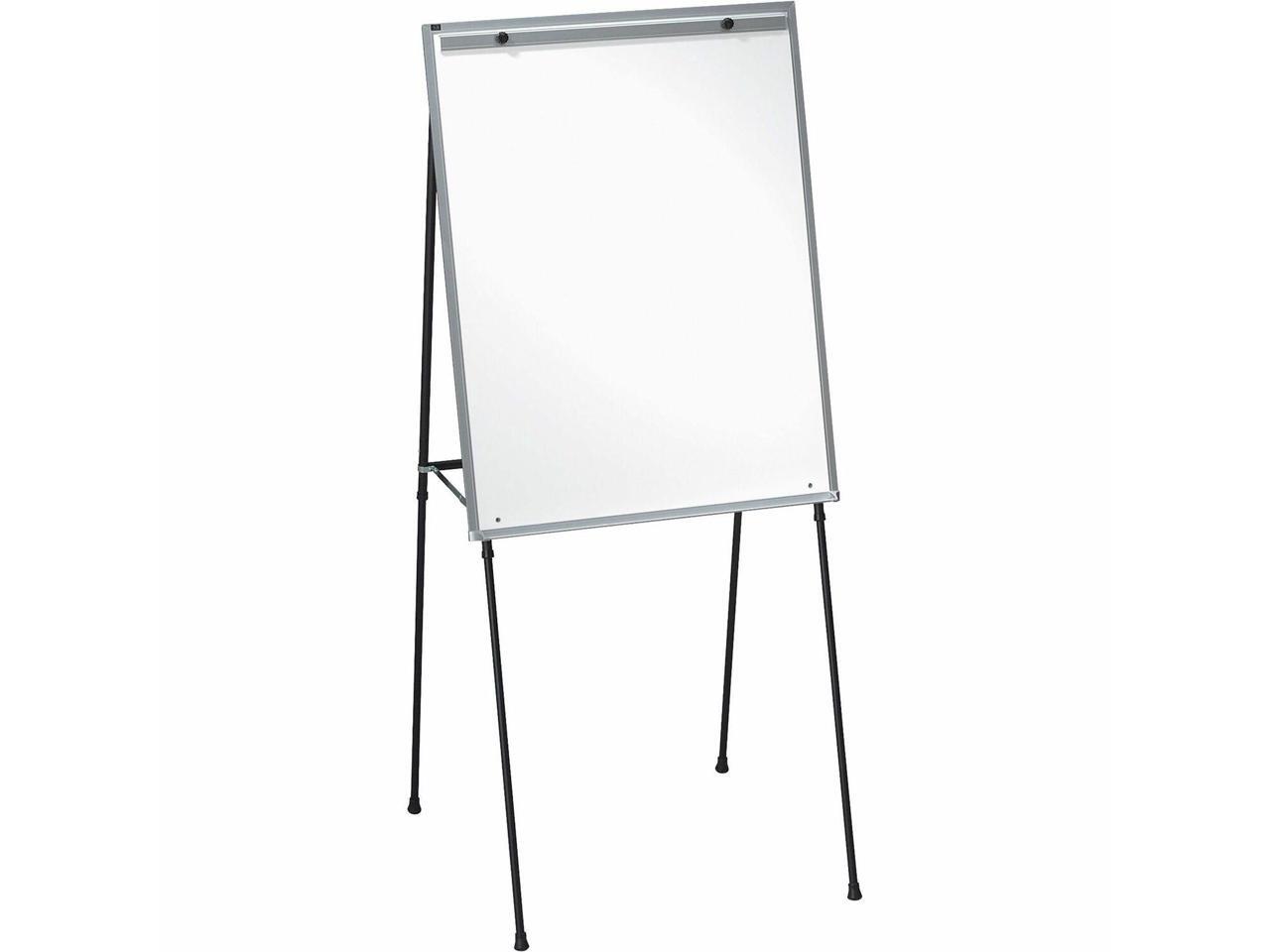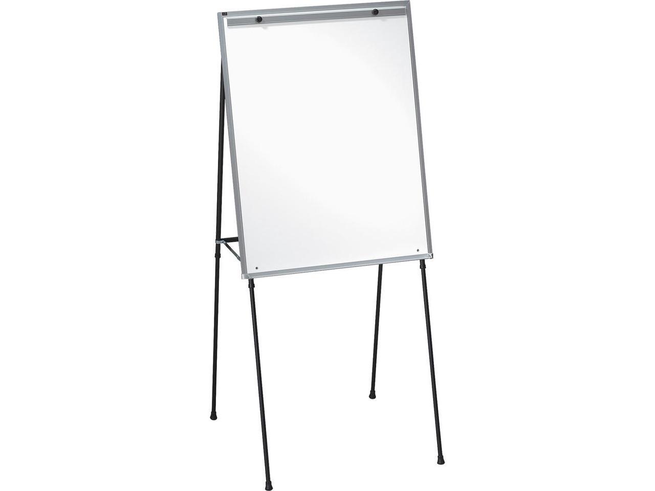 Dry-erase board easel features dry-erase writing surface with an accessory tray