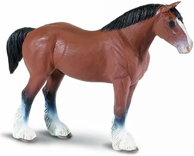 Discover the world of award winning horse collectibles developed for the avid collector. Each replica is carefully sculpted by a leading horse expert and expertly hand painted to ensure breed authenticity. Educational information in five languages provides interesting facts about each breed. In scale with our ever popular farm animals and wooden barn. To complete the playscape discover our Safari Ltd Pickup Truck and Derby Trailer that holds two horses for added play value. All our products are phthalate-free and thoroughly safety tested to safeguard your child`s health. We take pride in providing breathtaking innovative and value priced figures for now over three generations. Featured is our Winner`s Circle Clydesdale Stallion Size: 5.25" L x 4.25" H (13 x 11 cm). Suggested age 3 and up