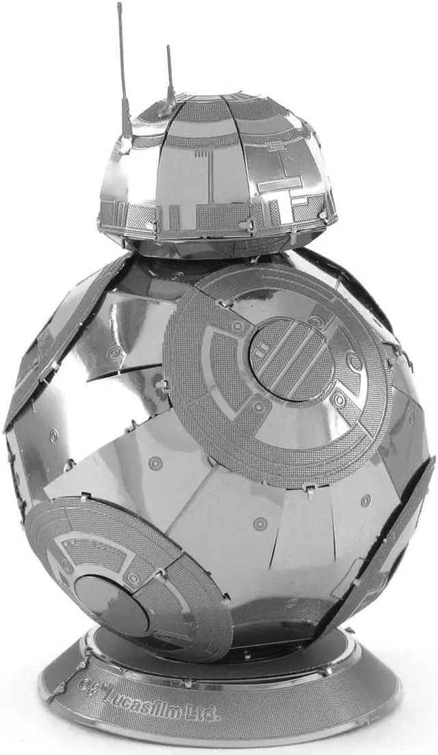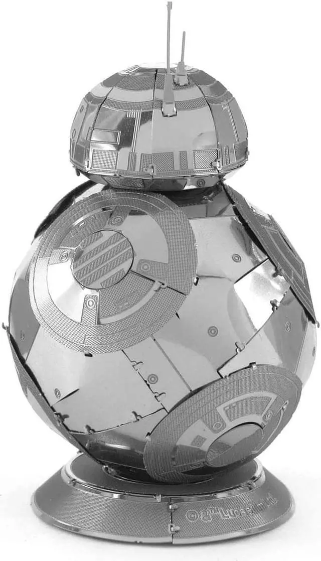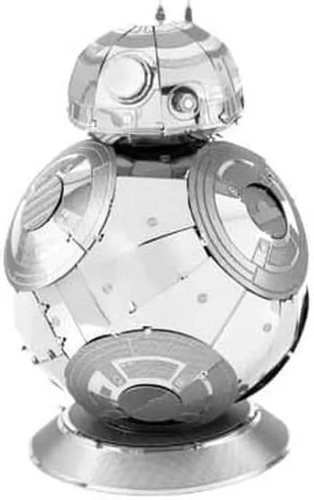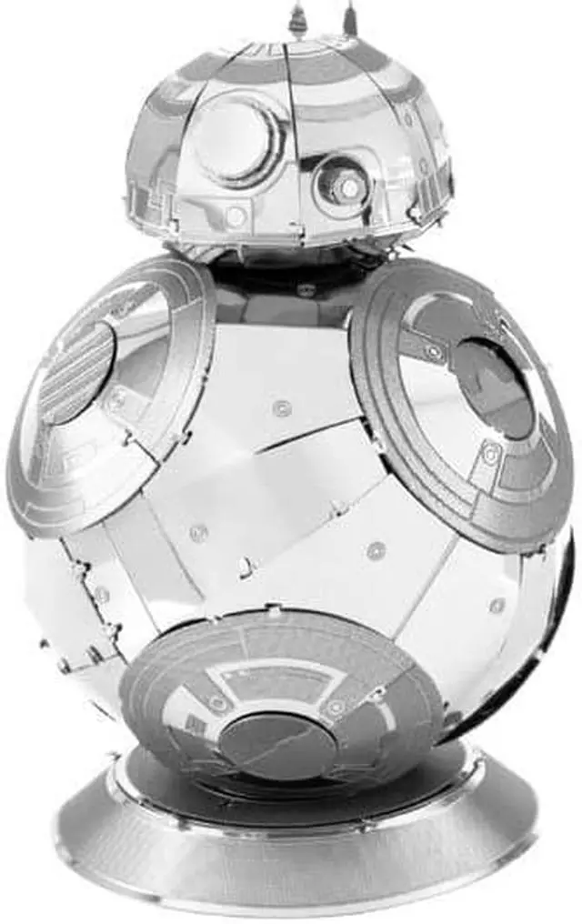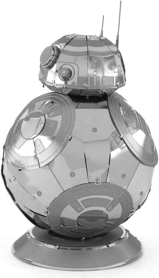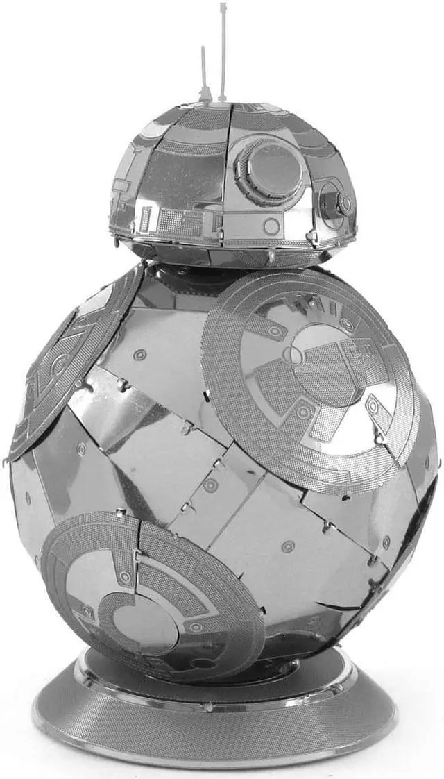 Superior detail in these do it yourself (DIY) models begin as a 4 inch steel sheet and when completed create a fabulous 3D miniature model. Easy to follow printed instructions included in every package. Build your entire collection today! BB-8, sometimes spelled Beebee-Ate, is a BB unit astromech droid who operated approximately thirty years after the Battle of Endor. It had a dome head, similar to that of R2 series astromech droids, with the bulk of its body made up of a ball on which the droid's head rolled. BB-8 was mostly white, with some silver and orange on its body, as well as a black photoreceptor. The droid belonged to Resistance pilot Poe Dameron, whom he accompanied during his flights on his T-70 X-wing fighter.