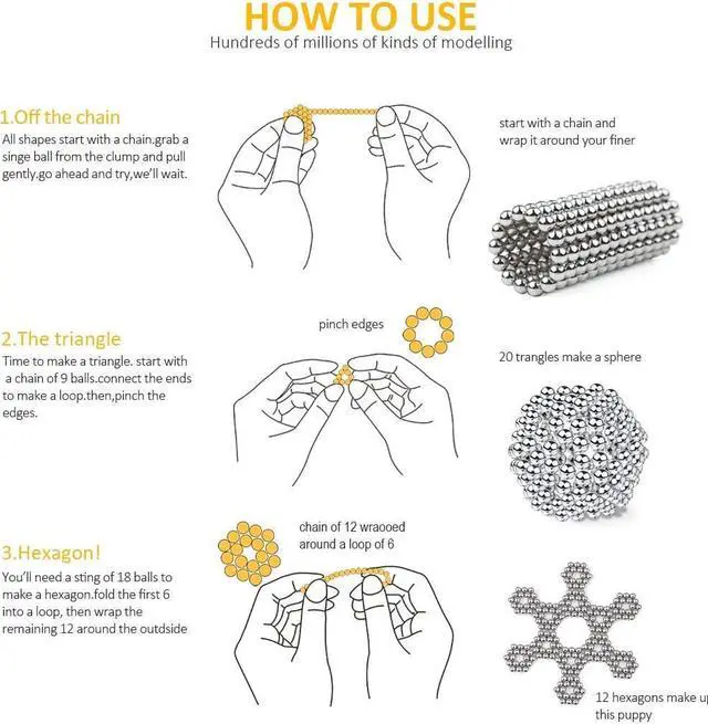 Main Benefits/ Feature: -It is easy to assemble without the need for special tools. Infinite combinations are no easy, but as long as your patience and creativity. -A creative toy with the magnetic ability which makes it possible to compose hundreds of geometric patterns. -Full of high entertainment and creativity. -Exquisite, combinatory, glossy.