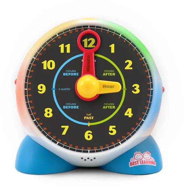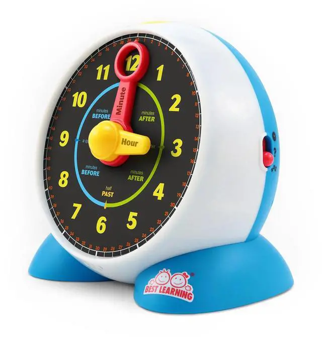 Explore each minute with movable hour and minute hands. Hands on the clock turn independent of each other and can be turned counterclockwise without breaking! In Time Mode, just move hands then press the circle button on the top of the clock, it'll tell you the time! How intuitive to use!
