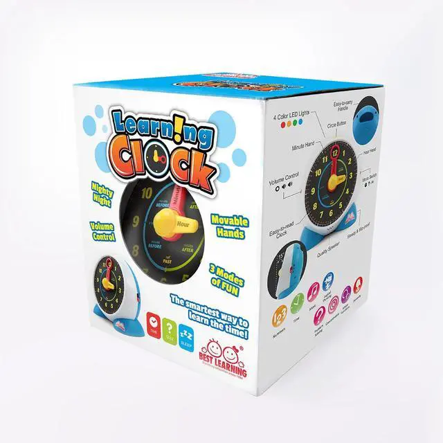 "What time is it?" The smartest interactive talking clock toy to engage youngsters on how to read the clock with the movable hour hand and minute hand to the minute! Durable toy and its interactivity is essential to keep children absorbed in Quiz Mode! Also as a musical and colorful nightlight in sleepy time.