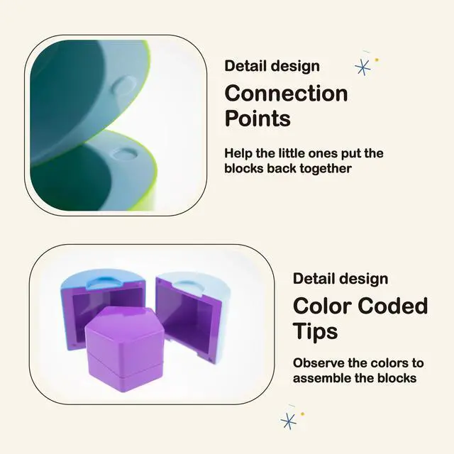 Educate young children these blocks for toddlers feature vibrant colors and a variety of geometric shapes, making learning fun and interactive. Perfectly crafted for little hands, these building blocks for toddlers help develop fine motor skills, shape recognition, and color identification. Along with a colorful cardboard book, your child will explore shapes, colors, and creative building with ease. This set promotes steam learning, combining building toys and educational activities to spark creativity. Children can stack, sort, and build imaginative structures while improving problem-solving skills. Designed for ages 3 and up, baby blocks in this set are safe, durable, and ideal for hours of educational play.my geo-blox is a fun and engaging way to introduce early concepts of geometry, and it's a great addition to any playroom. Let your child build their way to learning success with this hands-on activity, perfect for individual or shared play with friends.